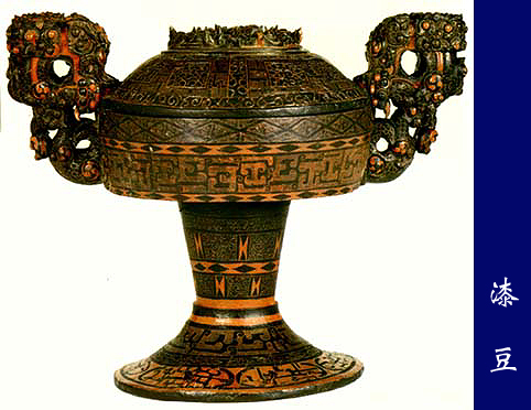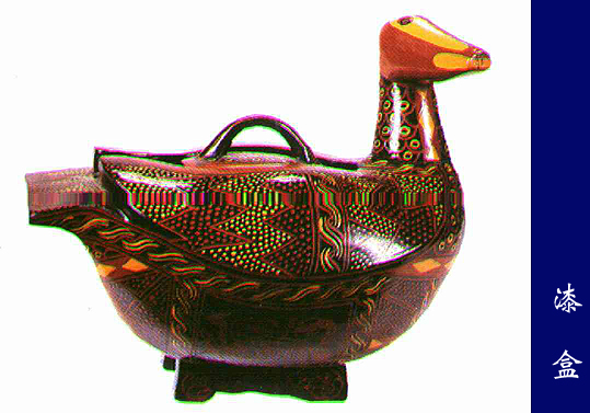 漆器是雕塑和漆绘高度结合的产物。胎体的造型和漆绘的图案与色彩都反映了楚人的审美观念和艺术品味。