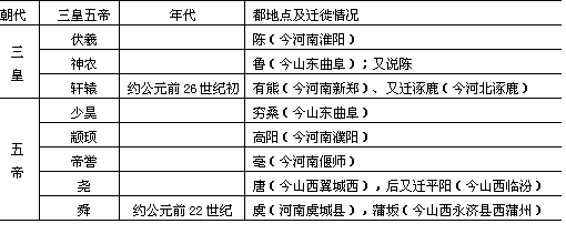 关于我国远古都城宫室的传说,《周礼》、《尚书》、《左传》、《史记》等早期文献都有记载。最古老的古都记载有所谓“三皇五帝之都”。南宋郑樵《通志·都邑略》、宋代《册府元龟》和《太平御览》等书,都对古代文献中有关这方面的传说进行了整理,比较系统地记 表2—1 传说中的三皇五帝之都表