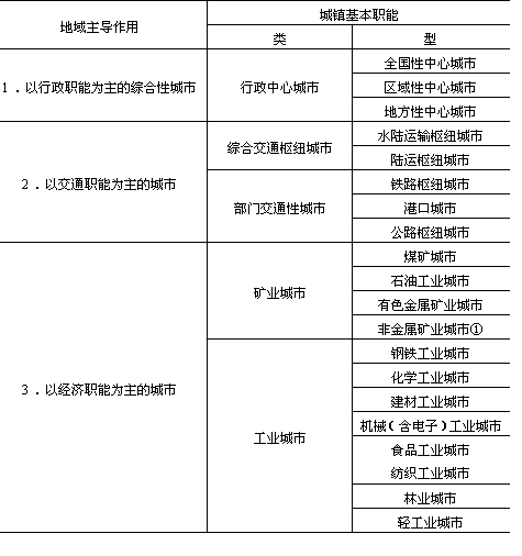 克利斯泰勒(W.Christaller)的中心地理论认为城市的一般职能是它的中心性①。迪肯逊(R.E.Dickinson)则把这种地域中心的职能视为城镇的地域职能②。我们认为,城镇作为地域经济发展的产物,在其自身发展的过程中,在其利用地域资源的同时,也形成了一定的城市区域。这种城市区域与其核心——城市存在着密切的经济、社会、文化联系,也正是这种联系强度,比较客观地反映了各城镇在特定地域的地位和作用,是城镇职能确定的主要指标。更进一步讲,城镇作为以人为主体,以空间利用为特点,以集聚效益为目的一个集约人口、集约经济、集约科学文化的空间地域系统的本质是无庸置疑的。现代城市(镇),实质上是经济、社会(含政治、文化等)和物资三位一体的有机实体。因此,在中国城镇体系内城镇基本职能类型的划分,主要依据以下三个主要方面①: 1.作为社会实体的城镇 在我国城镇体系中,城镇作为社会实体,3000多年来形成一个自上而下的行政管理系统,以及相互之间的文化、社会活动,也就具有显著的政治职能和文化职能。这种强有力的政治(行政)职能对其经济、文化的发展影响巨大,具有相当明显的地域中心作用。因此,我们将其划分为以行政职能为主的综合性城市,其中包括全国性、区域性和地方性三个层次。值得指出的是,随着我国以城市为中心的经济网络形成和“市带县”管理体制的全面铺开和落实,这类以行政为主的综合性城市职能将逐步向以行政——经济职能(或经济——行政职能)为主转化,而且将进一步得到发展,成为我国城镇体系的中坚部分。 2.作为物资实体的城镇 在我国城镇体系中,城镇作为物资实体,其不仅是物资(商品)的生产者,而且也是消费者。人们的经济活动和城市之间的商品交流和流通发生紧密的联系,城市(镇)必然就具有交通和流通的职能。自先秦以来,我国城镇体系内这类城市即有所发展,至近代由于轮船、铁路、公路等交通方式的发展,交通型和流通型城市已成为我国现代城镇体系对外开放、物资和“能量”交流的所在。根据城镇体系内各城市(镇)对交通方式的不同依赖性,我们可将这类城市(镇)划分为以交通职能为主和以流通中心为主两种城市。 3.作为经济实体的城镇 在我国城镇体系中,尤其现代城镇体系内,城镇作为经济实体,是现代生产力的载体。在这个载体上有着高度集中、高度专门化分工和高度协作的经济网络,其在地域上的地位和作用必然是人类社会经济活动在空间上的投影,具有突出的经济职能。在我国古代城镇体系中,这类城市不多,其经济职能大都是寄生于行政职能为主的城市之上的。自近代以来,尤其现代城镇体系,由于近现代工业技术的迅速发展,城市(镇)基本都成为现代工业发展的据点。据此,我们将这类城市划分为以经济职能为主的城市,依据对制成品原料采集、加工和流通三大环节,又可细分为矿业城市、加工业城市和流通城市。鉴于流通城市对现代交通的依赖性,对行政中心的依附性,遂将其划归另一类城市。 此外,在我国城镇体系内,由于特定的地理位置,不同的历史发展基础,还具有一批特殊职能的城市(镇),如旅游城市(含历史文化名城)、科学城等以文化职能为主的城市。 根据我国城镇现状特征,将其职能划分为如下基本类型(表10-1): 表10-1 我国城镇基本职能类型表